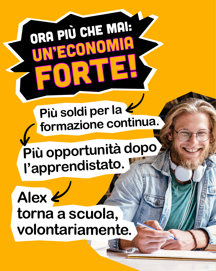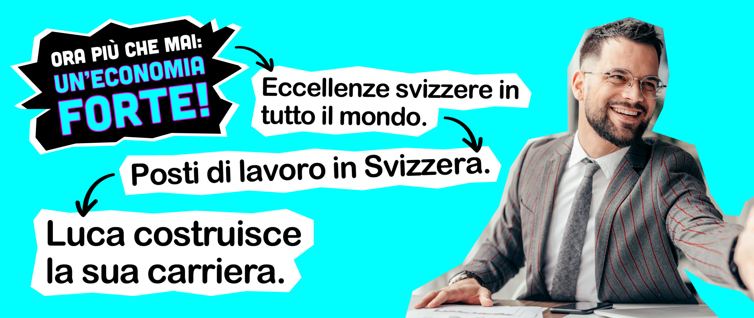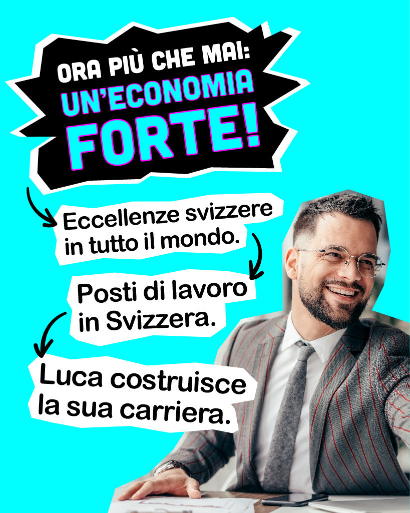 In Svizzera godiamo di un’alta qualità di vita. Ti sei mai chiesto da dove provenga? La nostra prosperità non è scontata. Si basa su un’economia forte. Questa crea posti di lavoro, promuove l’innovazione, rende possibile una buona formazione e condizioni quadro stabili, di cui tutti beneficiamo nella vita quotidiana.